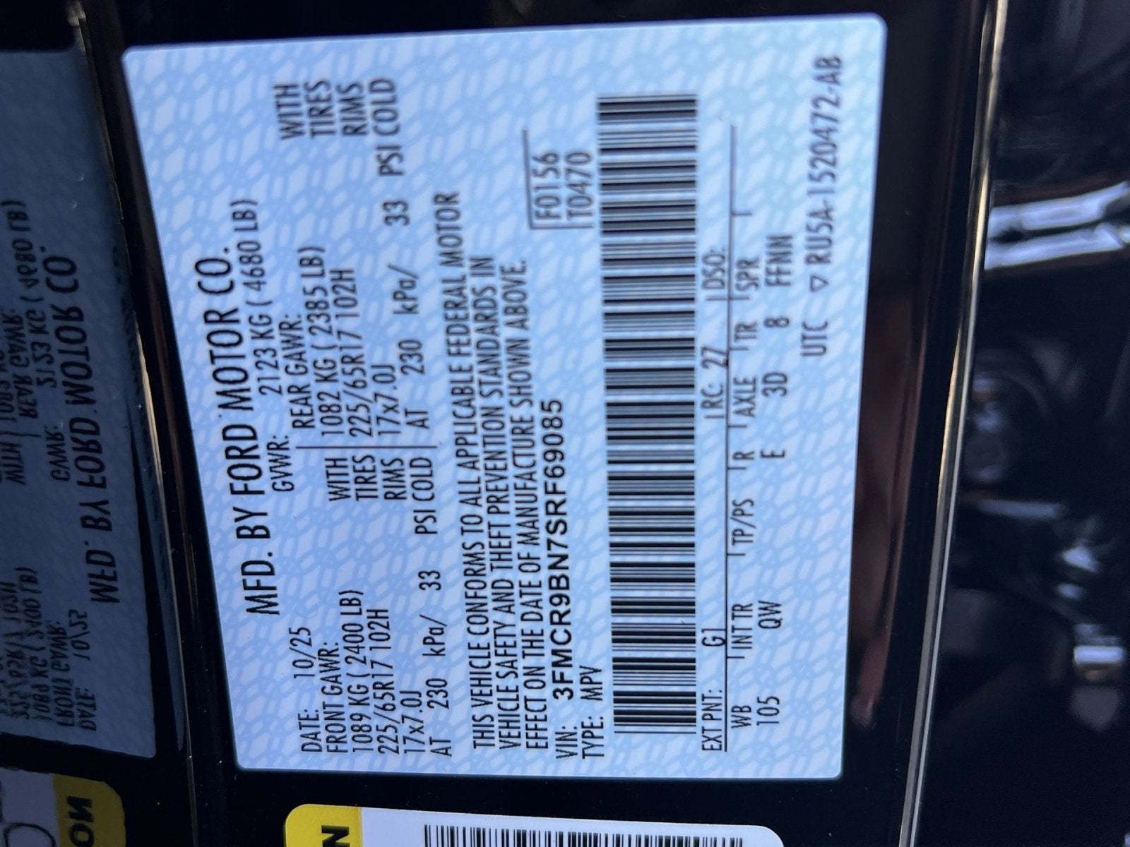 VIN: 3FMCR9BN7SRF69085