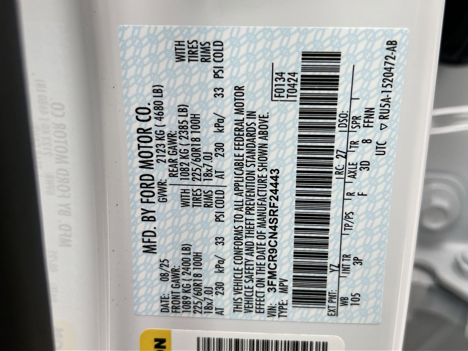 - ENGINE: 1.5L ECOBOOST -inc: auto start-stop technology (STD)