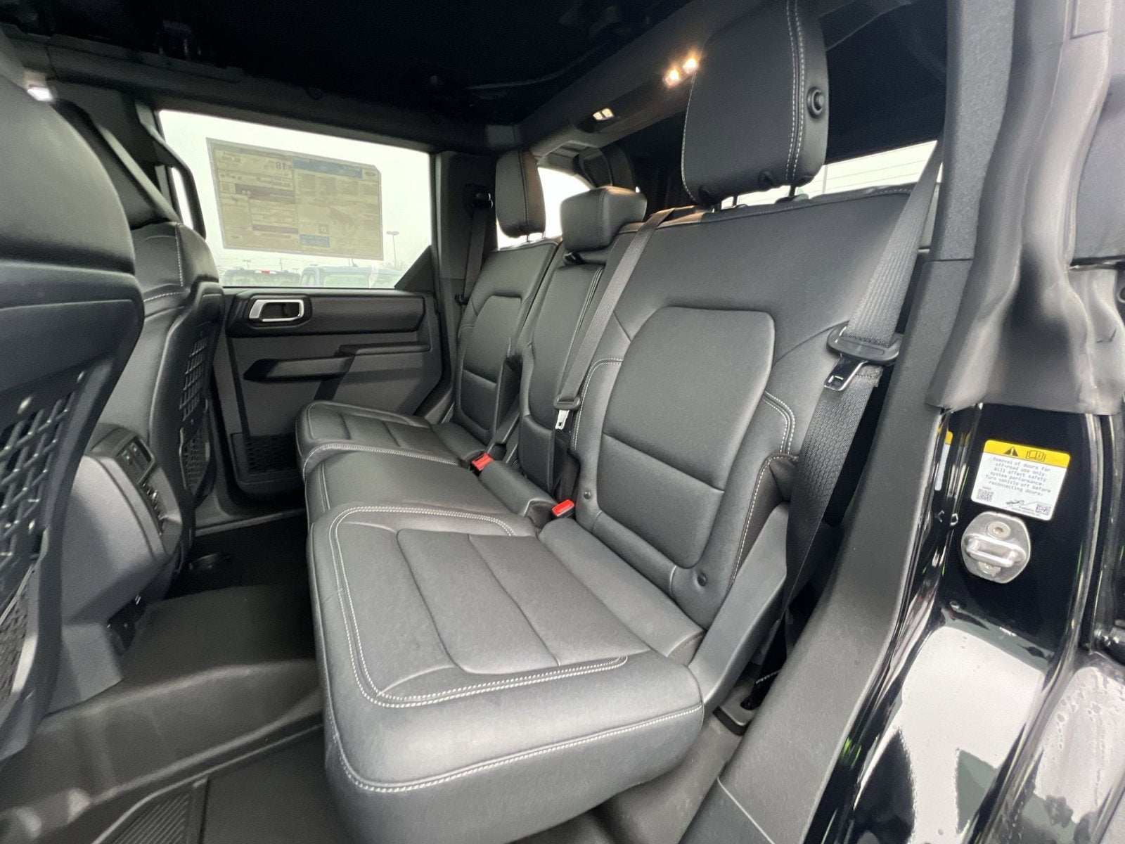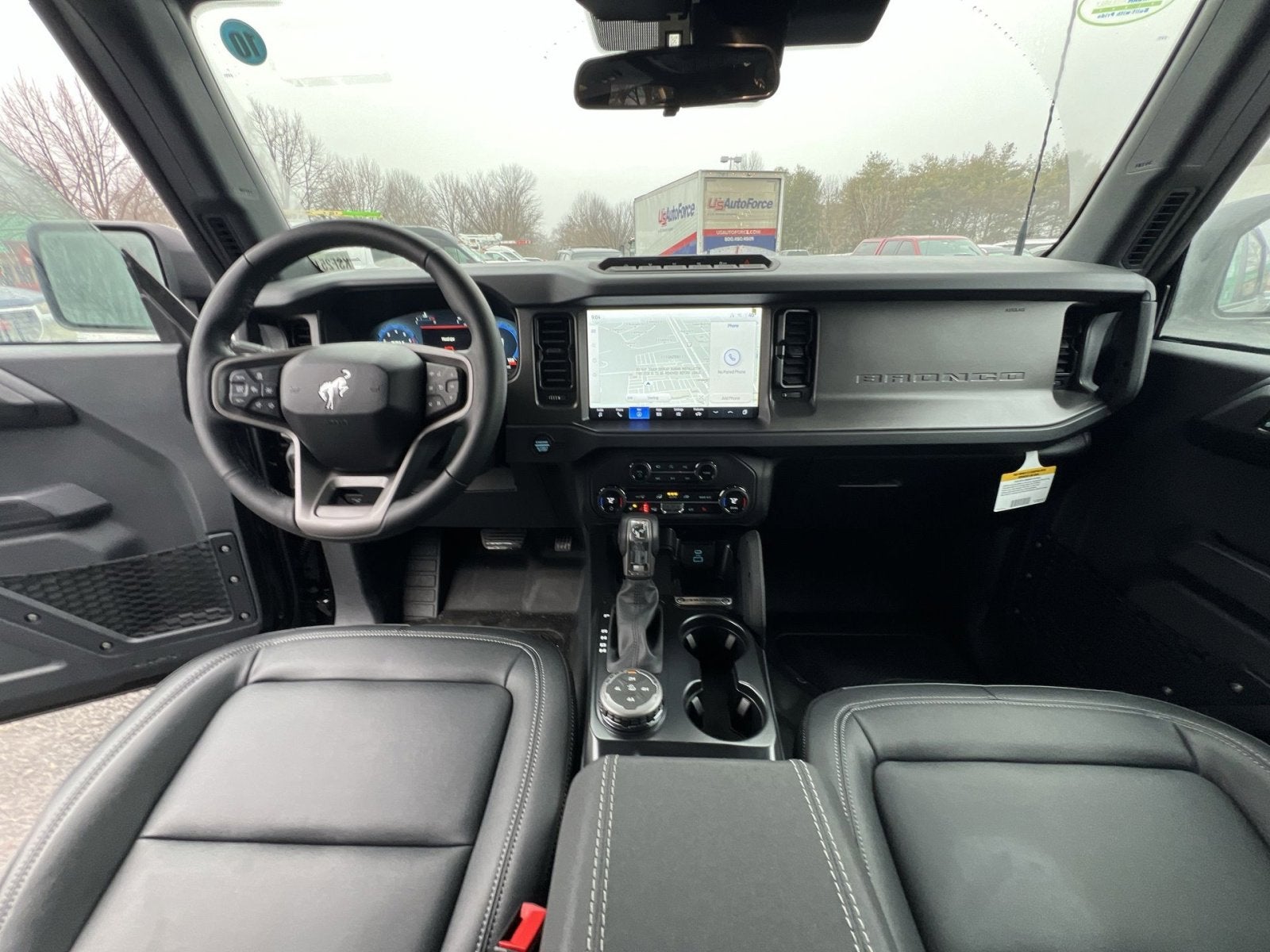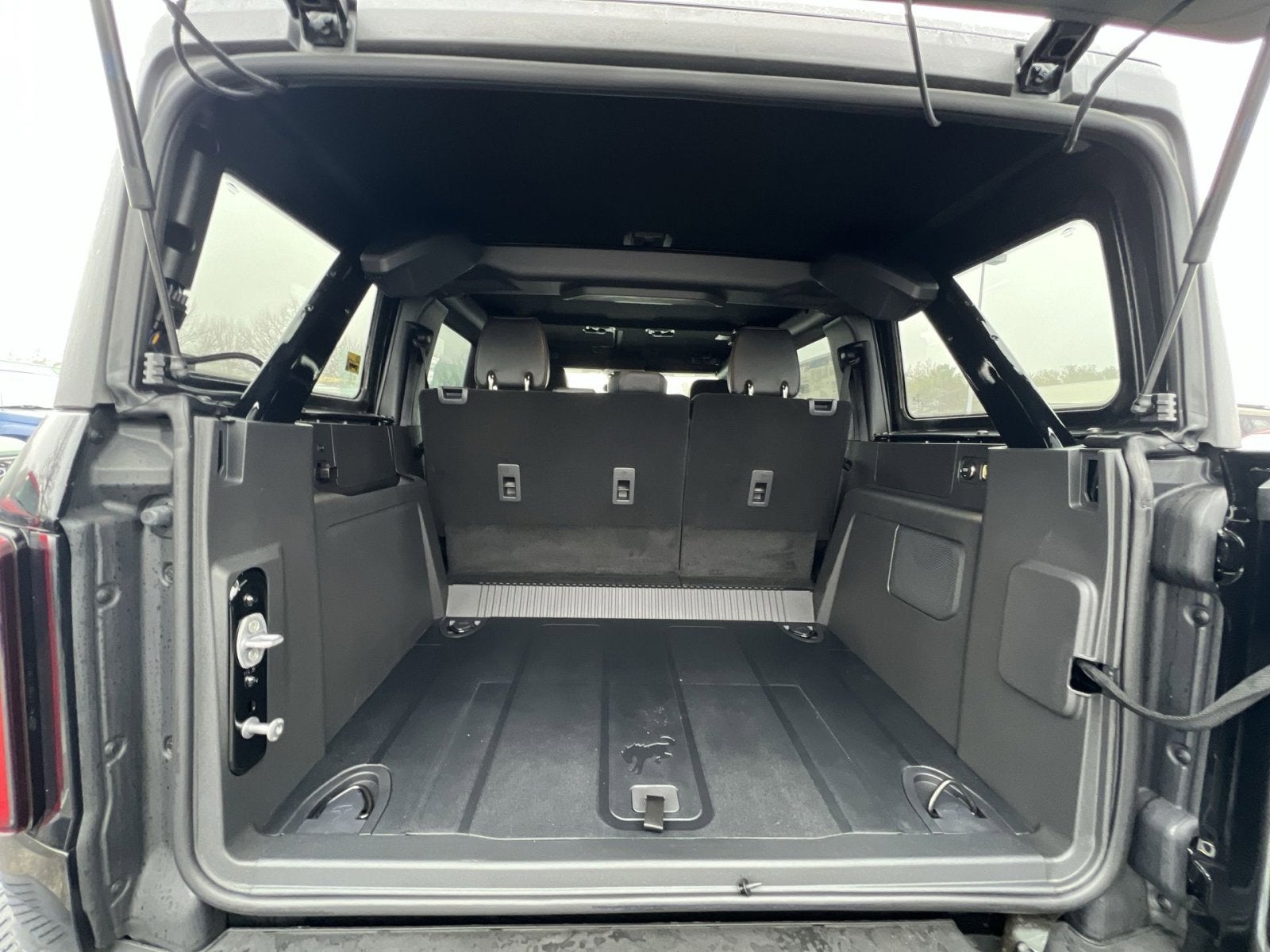 2-Door Intelligent Access w/Lock/Unlock, 360-Degree Camera, 4-Wheel Disc Brakes, 7 Speakers, ABS brakes, Adaptive Cruise Control, Air Conditioning, Alloy wheels, AM/FM radio: SiriusXM with 360L, AM/FM Stereo, Ambient Footwell Lighting, Auto High-Beam Headlamps, Auto High-beam Headlights, Auto-dimming Rear-View mirror, BLIS Blind Spot Information System, Brake assist, Carbonized Gray Molded-In-Color Hard Top, Compass, Connected Navigation, Delay-off headlights, Door Storage Bags, Dr & Pass Illuminated Sliding Visor Vanity Mirrors, Driver door bin, Driver vanity mirror, Dual front impact airbags, Dual front side impact airbags, Dual Smart Charging USB Ports, Dual-Zone Electronic Automatic Temperature Control, Electronic Stability Control, Emergency communication system: 911 Assist, Equipment Group 334A Lux Package, Evasive Steering Assist, Exterior Parking Camera Rear, Front & Rear Floor Liners w/o Carpet Floor Mats, Front anti-roll bar, Front Bucket Seats, Front Center Armrest, Front fog lights, Front License Plate Bracket, Front Parking Sensors, Front reading lights, Front Row Heated Seats, Front wheel independent suspension, Fully automatic headlights, Hard Top Sound Deadening Headliner, Heated door mirrors, Heated front seats, Heated steering wheel, High Clearance Fender Flares, High Clearance Suspension, Illuminated entry, Information on Demand Panel, Integrated roll-over protection, Internet access capable: FordPass Connect, Lane-Keeping System, Leather Shift Knob, Low tire pressure warning, Marine Grade Vinyl Heated Bucket Seats, Occupant sensing airbag, Outside temperature display, Overhead airbag, Overhead console, Panic alarm, Passenger door bin, Passenger vanity mirror, Position-Sensitive Bilstein Shock Absorbers, Power door mirrors, Power Outlet - Back Side of Center Floor Console, Power steering, Power windows, Pre-Collision Assist w/Automatic Emergency Braking, Radio data system, Radio: B&O Sound System by Bang & Olufsen, Rear Parking Sensors, Rear-View Camera, Rear-Window Defroster & Washer, Remote keyless entry, Sasquatch Package, Security system, Sideview Mirrors, SiriusXM w/360L, Speed control, Split folding rear seat, Steering wheel mounted audio controls, SYNC 4, Tachometer, Telescoping steering wheel, Tilt steering wheel, Traction control, Trip computer, Universal Garage Door Opener, Variably intermittent wipers, Voltmeter, Wheels: 17 Carbonized Gray Painted Aluminum, Wheels: 17 Carbonized Gray-Painted Aluminum.