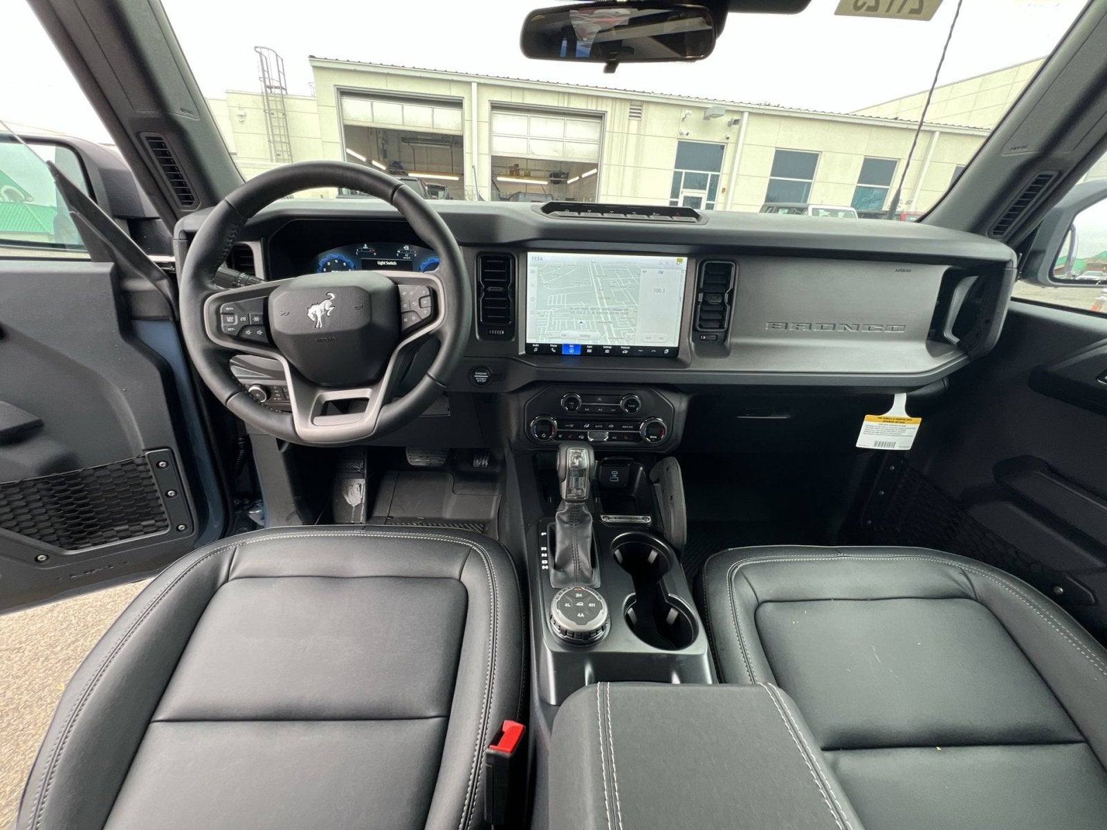 2-Door Intelligent Access w/Lock/Unlock, 4-Wheel Disc Brakes, 7 Speakers, ABS brakes, Air Conditioning, Alloy wheels, AM/FM radio: SiriusXM with 360L, AM/FM Stereo, Ambient Footwell Lighting, Auto High-Beam Headlamps, Auto High-beam Headlights, Auto-dimming Rear-View mirror, BLIS Blind Spot Information System, Brake assist, Bronco-Branded Console Cupholder, Compass, Connected Navigation, Delay-off headlights, Dr & Pass Illuminated Sliding Visor Vanity Mirrors, Driver door bin, Driver vanity mirror, Dual front impact airbags, Dual front side impact airbags, Dual Smart Charging USB Ports, Dual-Zone Electronic Automatic Temperature Control, Electronic Stability Control, Emergency communication system: 911 Assist, Equipment Group 332A Mid Package, Exterior Parking Camera Rear, Ford Integrated Tether System (FITS) Accessory Pkg, Front & Rear Floor Liners w/o Carpet Floor Mats, Front anti-roll bar, Front Bucket Seats, Front Center Armrest, Front fog lights, Front License Plate Bracket, Front reading lights, Front Row Heated Seats, Front wheel independent suspension, Fully automatic headlights, Hard Top Sound Deadening Headliner, Heated door mirrors, Heated front seats, Heated steering wheel, High Clearance Fender Flares, High Clearance Suspension, Illuminated entry, Integrated roll-over protection, Internet access capable: FordPass Connect, Lane-Keeping System, Leather Shift Knob, Low tire pressure warning, Marine Grade Vinyl Heated Bucket Seats, Occupant sensing airbag, Outside temperature display, Overhead airbag, Overhead console, Panic alarm, Passenger door bin, Passenger vanity mirror, Position-Sensitive Bilstein Shock Absorbers, Power door mirrors, Power Outlet - Back Side of Center Floor Console, Power steering, Power windows, Pre-Collision Assist w/Automatic Emergency Braking, Radio data system, Rear Parking Sensors, Rear-View Camera, Rear-Window Defroster & Washer, Remote keyless entry, Sasquatch Package, Security system, Shadow Black Painted Hard Top, SiriusXM w/360L, Speed control, Split folding rear seat, Steering wheel mounted audio controls, SYNC 4, Tachometer, Telescoping steering wheel, Tilt steering wheel, Traction control, Trip computer, Variably intermittent wipers, Voltmeter, Wheels: 17 Black High Gloss-Painted Aluminum (64X), Wheels: 17 Carbonized Gray Painted Aluminum, Wheels: 17 Carbonized Gray-Painted Aluminum.