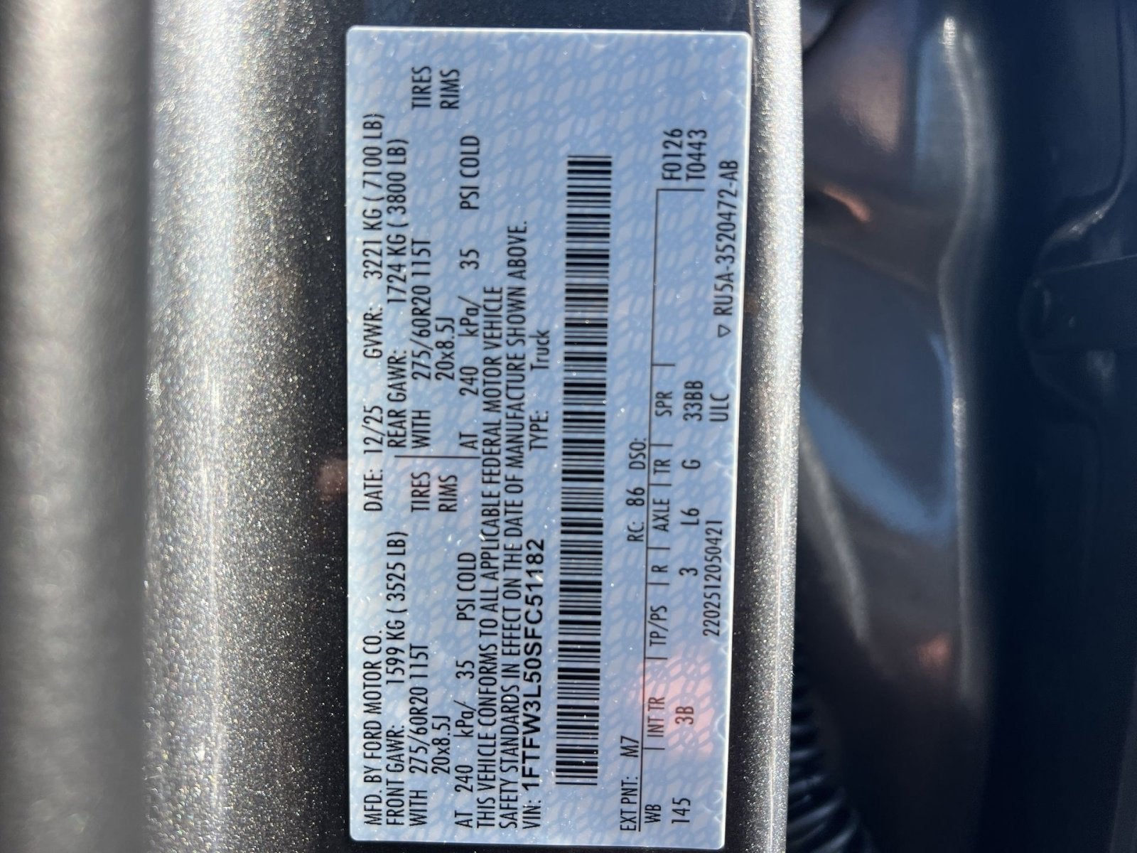 VIN: 1FTFW3L50SFC51182