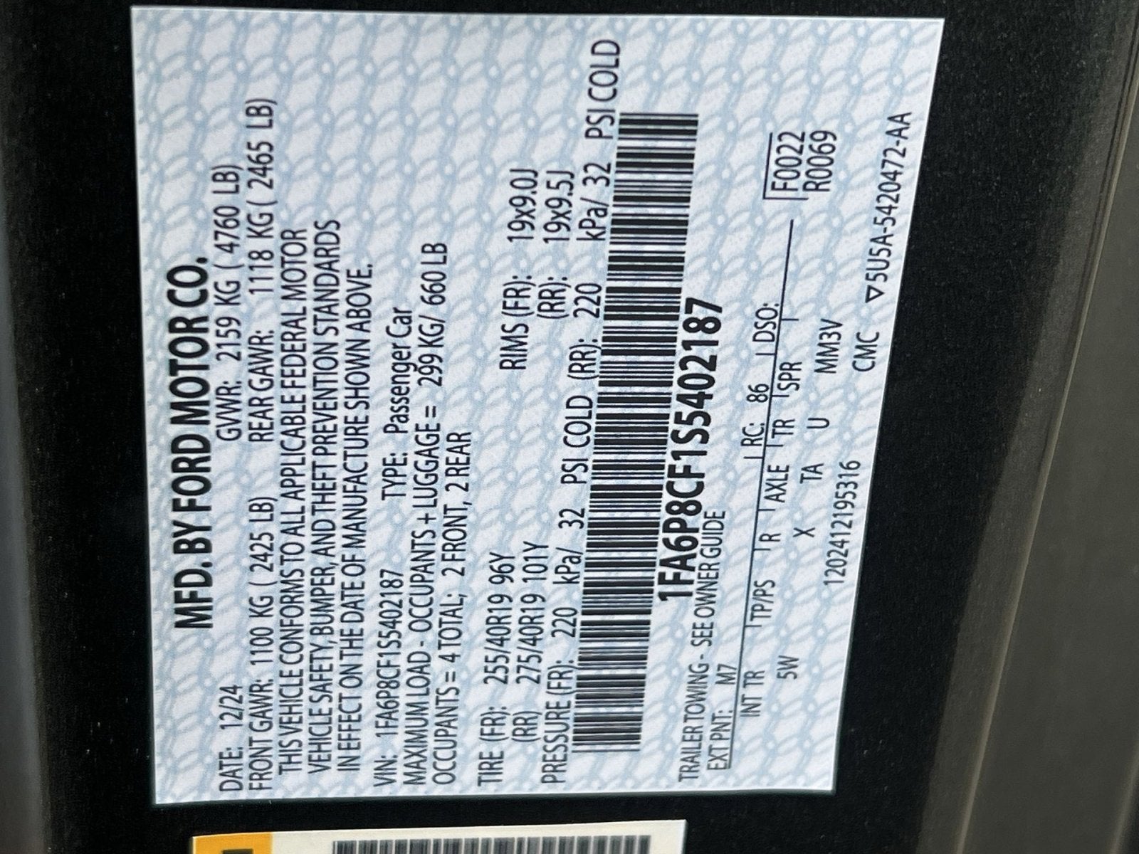 - Vehicle Name: Ford Mustang