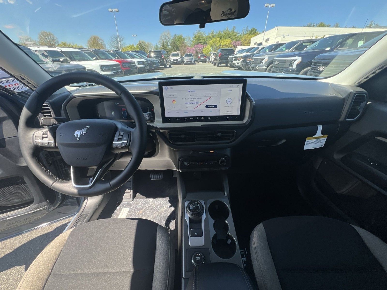 4-Wheel Disc Brakes, 6 Speakers, ABS brakes, Air Conditioning, Alloy wheels, AM/FM radio: SiriusXM with 360L, AM/FM Stereo, Apple CarPlay/Android Auto, Auto High-beam Headlights, Automatic temperature control, Brake assist, Cloth with Easy-to-Clean Front Bucket Seats, Compass, Delay-off headlights, Driver door bin, Driver vanity mirror, Dual front impact airbags, Dual front side impact airbags, Electronic Stability Control, Emergency communication system: SYNC 4 911 Assist, Exterior Parking Camera Rear, Ford Connectivity Package (1-Year Included), Four wheel independent suspension, Front anti-roll bar, Front Bucket Seats, Front Center Armrest, Front reading lights, Fully automatic headlights, Heated door mirrors, Illuminated entry, Internet access capable: 5G Modem - Ford Connectivity Package, Knee airbag, Low tire pressure warning, Occupant sensing airbag, Outside temperature display, Overhead airbag, Overhead console, Panic alarm, Passenger door bin, Passenger vanity mirror, Power door mirrors, Power steering, Power windows, Radio data system, Rear anti-roll bar, Rear Parking Sensors, Rear reading lights, Rear seat center armrest, Rear window defroster, Rear window wiper, Remote keyless entry, Security system, SiriusXM with 360L, Speed control, Speed-sensing steering, Speed-Sensitive Wipers, Split folding rear seat, Steering wheel mounted audio controls, SYNC 4 with Enhanced Voice Recognition, Tachometer, Telescoping steering wheel, Tilt steering wheel, Traction control, Trip computer, Variably intermittent wipers, Wheels: 17 Carbonized Gray Painted Aluminum.