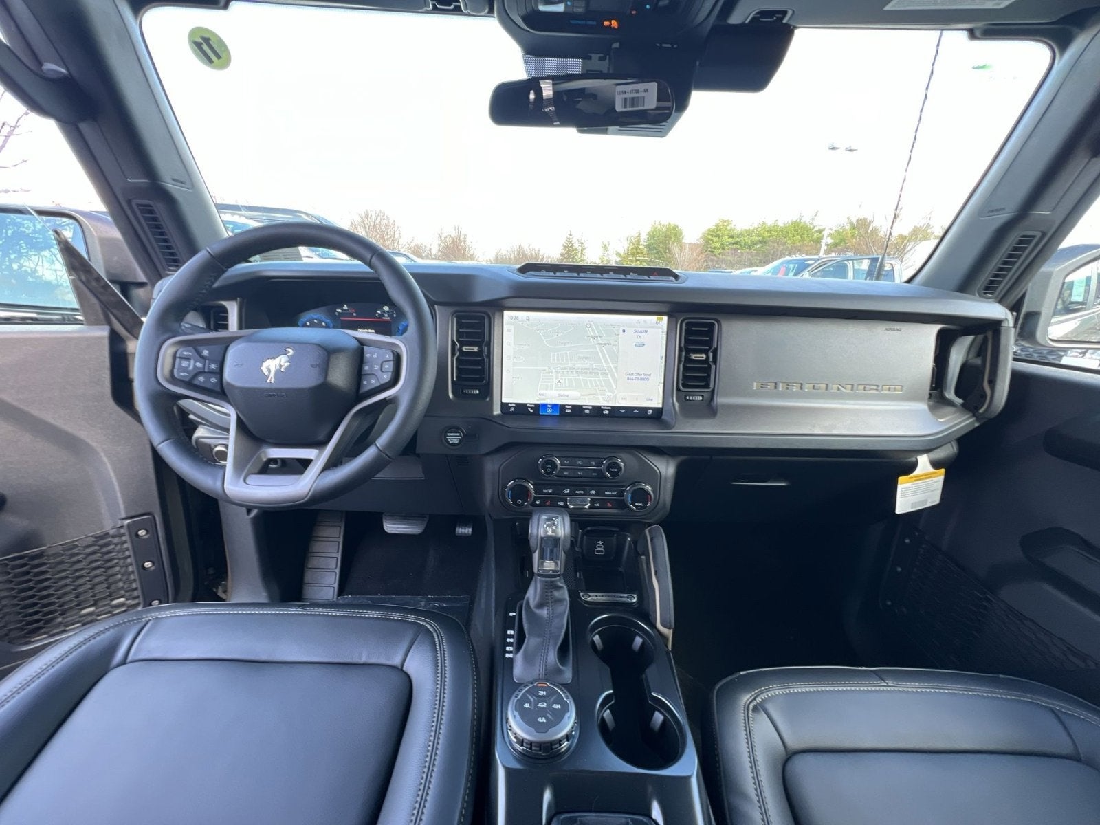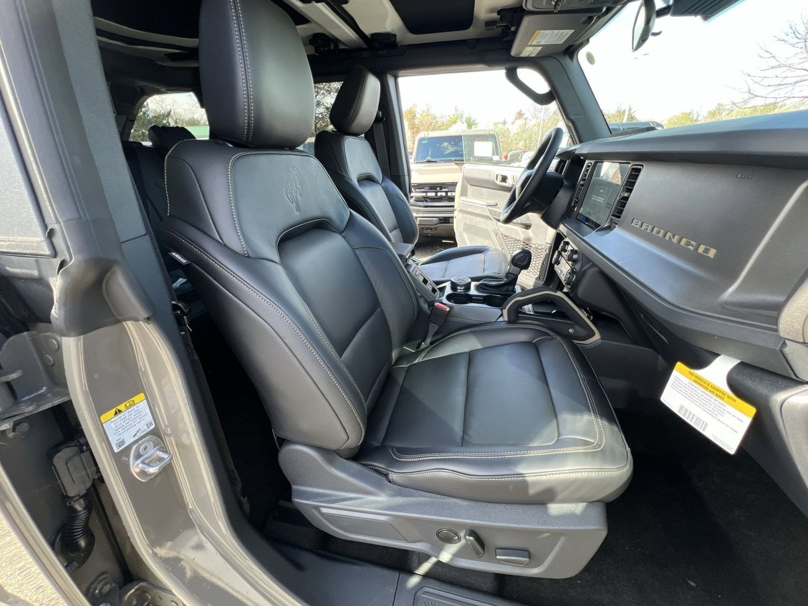 2-Door Intelligent Access with Lock/Unlock, 360-Degree Camera, 4-Wheel Disc Brakes, 7 Speakers, ABS brakes, Adaptive Cruise Control, Air Conditioning, Alloy wheels, AM/FM radio: SiriusXM with 360L, AM/FM Stereo, Ambient Footwell Lighting, Auto High-Beam Headlamps, Auto High-beam Headlights, Auto-dimming Rear-View mirror, BLIS Blind Spot Information System, Brake assist, Compass, Connected Navigation, Delay-off headlights, Driver and Front Passenger Illuminated Sliding Visor Vanity Mirrors, Driver door bin, Driver vanity mirror, Dual front impact airbags, Dual front side impact airbags, Dual Smart Charging USB Ports, Dual-Zone Electronic Automatic Temperature Control, Electronic Stability Control, Emergency communication system: 911 Assist, Equipment Group 334A Lux Package, Evasive Steering Assist, Exterior Parking Camera Rear, Ford Connectivity Package (1-Year Included), Ford Performance Heavy-Duty Modular Front Bumper, Front anti-roll bar, Front Bucket Seats, Front Center Armrest, Front fog lights, Front License Plate Bracket, Front Parking Sensors, Front reading lights, Front Row Heated Seats, Front Stabilizer Disconnect, Front wheel independent suspension, Fully automatic headlights, Hard Top Sound Deadening Headliner, Heated door mirrors, Heated front seats, Heated Steering Wheel, High Clearance Suspension, Illuminated entry, Information on Demand Panel, Integrated roll-over protection, Lane-Keeping System, Leather Shift Knob, Low tire pressure warning, Marine Grade Vinyl Heated Bucket Seats, Occupant sensing airbag, Outside temperature display, Overhead airbag, Overhead console, Painted Hard Top, Panic alarm, Passenger door bin, Passenger vanity mirror, Position-Sensitive Bilstein Shock Absorbers, Power door mirrors, Power steering, Power windows, Pre-Collision Assist with Automatic Emergency Braking, Pro Power Onboard - 400W, Radio data system, Rear Parking Sensors, Rear-View Camera, Rear-Window Defroster and Washer, Remote keyless entry, Sasquatch Package, Security system, Sideview Mirrors, SiriusXM with 360L, Speed control, Split folding rear seat, Steering wheel mounted audio controls, SYNC 4, Tachometer, Telescoping steering wheel, Tilt steering wheel, Traction control, Trip computer, Variably intermittent wipers, Voltmeter, Wheels: 17 Carbonized Gray-Painted Aluminum.