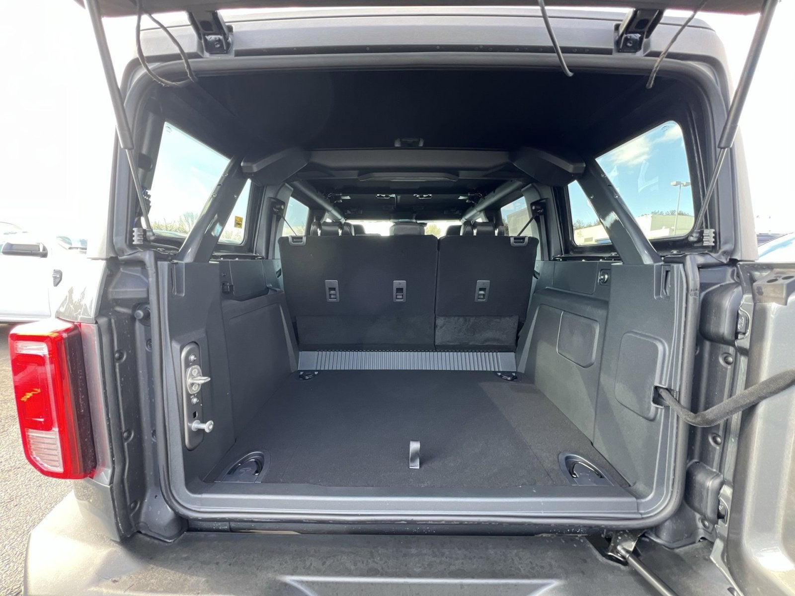 2-Door Intelligent Access with Lock/Unlock, 4-Wheel Disc Brakes, 4.46 Axle Ratio, 7 Speakers, ABS brakes, Air Conditioning, Alloy wheels, AM/FM radio: SiriusXM with 360L, AM/FM Stereo, Ambient Footwell Lighting, Auto High-Beam Headlamps, Auto High-beam Headlights, BLIS Blind Spot Information System, Brake assist, Carbonized Gray Molded-in-Color Hard Top, Cloth Bucket Seats, Compass, Connected Navigation, Delay-off headlights, Driver and Front Passenger Illuminated Sliding Visor Vanity Mirrors, Driver door bin, Driver vanity mirror, Dual front impact airbags, Dual front side impact airbags, Dual Smart Charging USB Ports, Dual-Zone Electronic Automatic Temperature Control, Electronic Stability Control, Emergency communication system: 911 Assist, Equipment Group 222A Mid Package, Exterior Parking Camera Rear, Ford Connectivity Package (1-Year Included), Front anti-roll bar, Front Bucket Seats, Front Center Armrest, Front License Plate Bracket, Front reading lights, Front Row Heated Seats, Front wheel independent suspension, Fully automatic headlights, Hard Top Sound Deadening Headliner, Heated door mirrors, Illuminated entry, Integrated roll-over protection, Lane-Keeping System, Low tire pressure warning, Occupant sensing airbag, Outside temperature display, Overhead airbag, Overhead console, Panic alarm, Passenger door bin, Passenger vanity mirror, Power door mirrors, Power steering, Power windows, Pre-Collision Assist with Automatic Emergency Braking, Pro Power Onboard - 400W, Radio data system, Rear Parking Sensors, Rear-View Camera, Rear-Window Defroster and Washer, Remote keyless entry, Security system, SiriusXM with 360L, Speed control, Split folding rear seat, Steering wheel mounted audio controls, SYNC 4, Tachometer, Telescoping steering wheel, Tilt steering wheel, Traction control, Trip computer, Variably intermittent wipers, Wheels: 17 Carbonized Gray-Painted Aluminum.