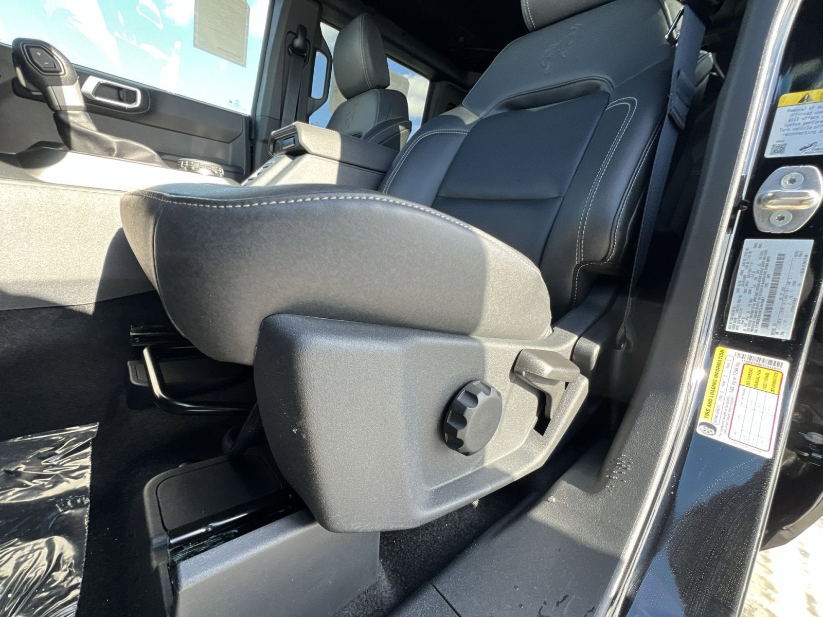 2-Door Intelligent Access with Lock/Unlock, 4-Wheel Disc Brakes, 4.46 Axle Ratio, 7 Speakers, ABS brakes, Air Conditioning, Alloy wheels, AM/FM radio: SiriusXM with 360L, AM/FM Stereo, Ambient Footwell Lighting, Auto High-Beam Headlamps, Auto High-beam Headlights, BLIS Blind Spot Information System, Brake assist, Carbonized Gray Molded-in-Color Hard Top, Cloth Bucket Seats, Compass, Connected Navigation, Delay-off headlights, Driver and Front Passenger Illuminated Sliding Visor Vanity Mirrors, Driver door bin, Driver vanity mirror, Dual front impact airbags, Dual front side impact airbags, Dual Smart Charging USB Ports, Dual-Zone Electronic Automatic Temperature Control, Electronic Stability Control, Emergency communication system: 911 Assist, Equipment Group 222A Mid Package, Exterior Parking Camera Rear, Ford Connectivity Package (1-Year Included), Front anti-roll bar, Front Bucket Seats, Front Center Armrest, Front License Plate Bracket, Front reading lights, Front Row Heated Seats, Front wheel independent suspension, Fully automatic headlights, Hard Top Sound Deadening Headliner, Heated door mirrors, Illuminated entry, Integrated roll-over protection, Lane-Keeping System, Low tire pressure warning, Occupant sensing airbag, Outside temperature display, Overhead airbag, Overhead console, Panic alarm, Passenger door bin, Passenger vanity mirror, Power door mirrors, Power steering, Power windows, Pre-Collision Assist with Automatic Emergency Braking, Pro Power Onboard - 400W, Radio data system, Rear Parking Sensors, Rear-View Camera, Rear-Window Defroster and Washer, Remote keyless entry, Security system, SiriusXM with 360L, Speed control, Split folding rear seat, Steering wheel mounted audio controls, SYNC 4, Tachometer, Telescoping steering wheel, Tilt steering wheel, Traction control, Trip computer, Variably intermittent wipers, Wheels: 17 Carbonized Gray-Painted Aluminum.