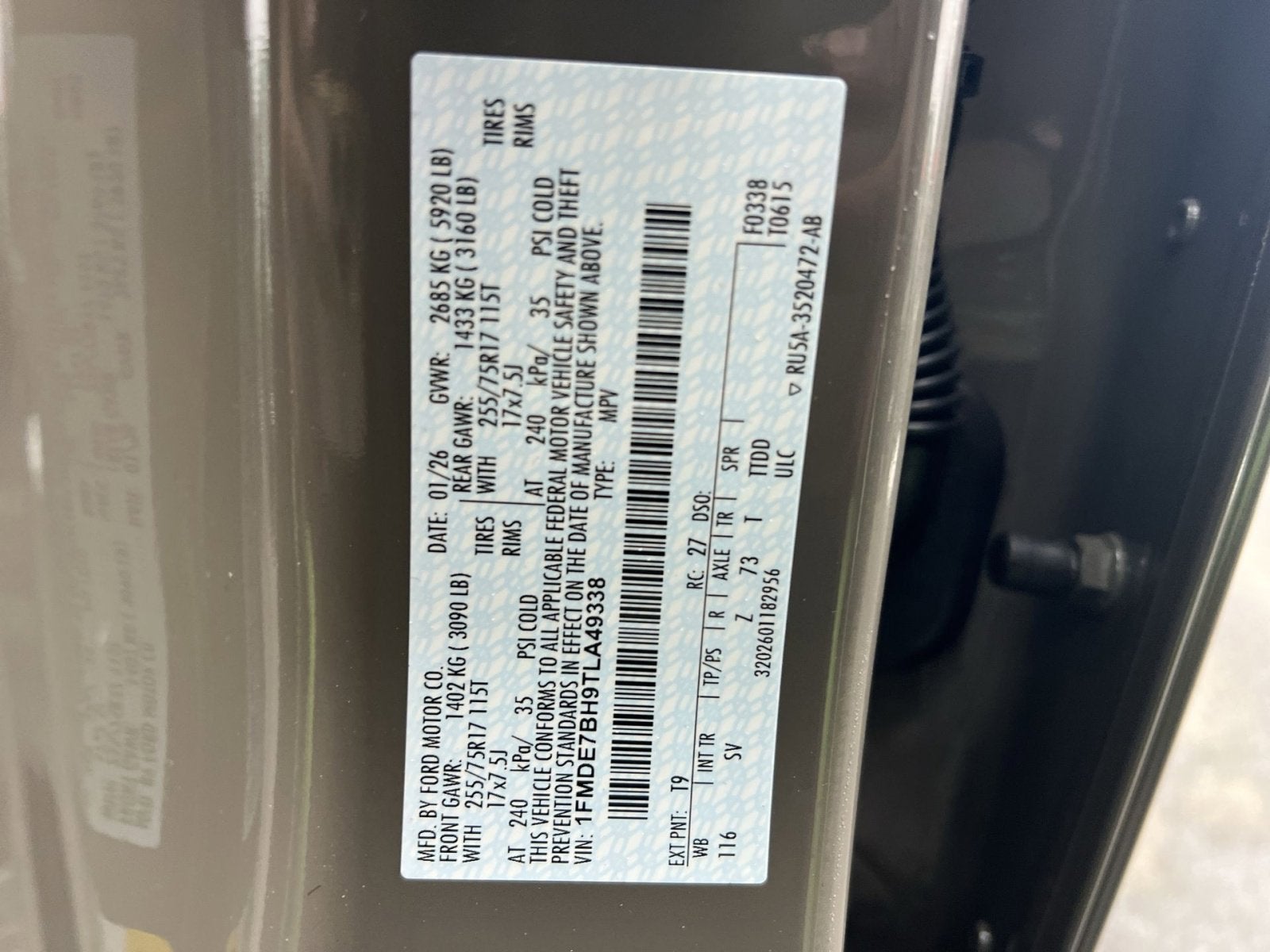 VIN: 1FMDE7BH9TLA49338