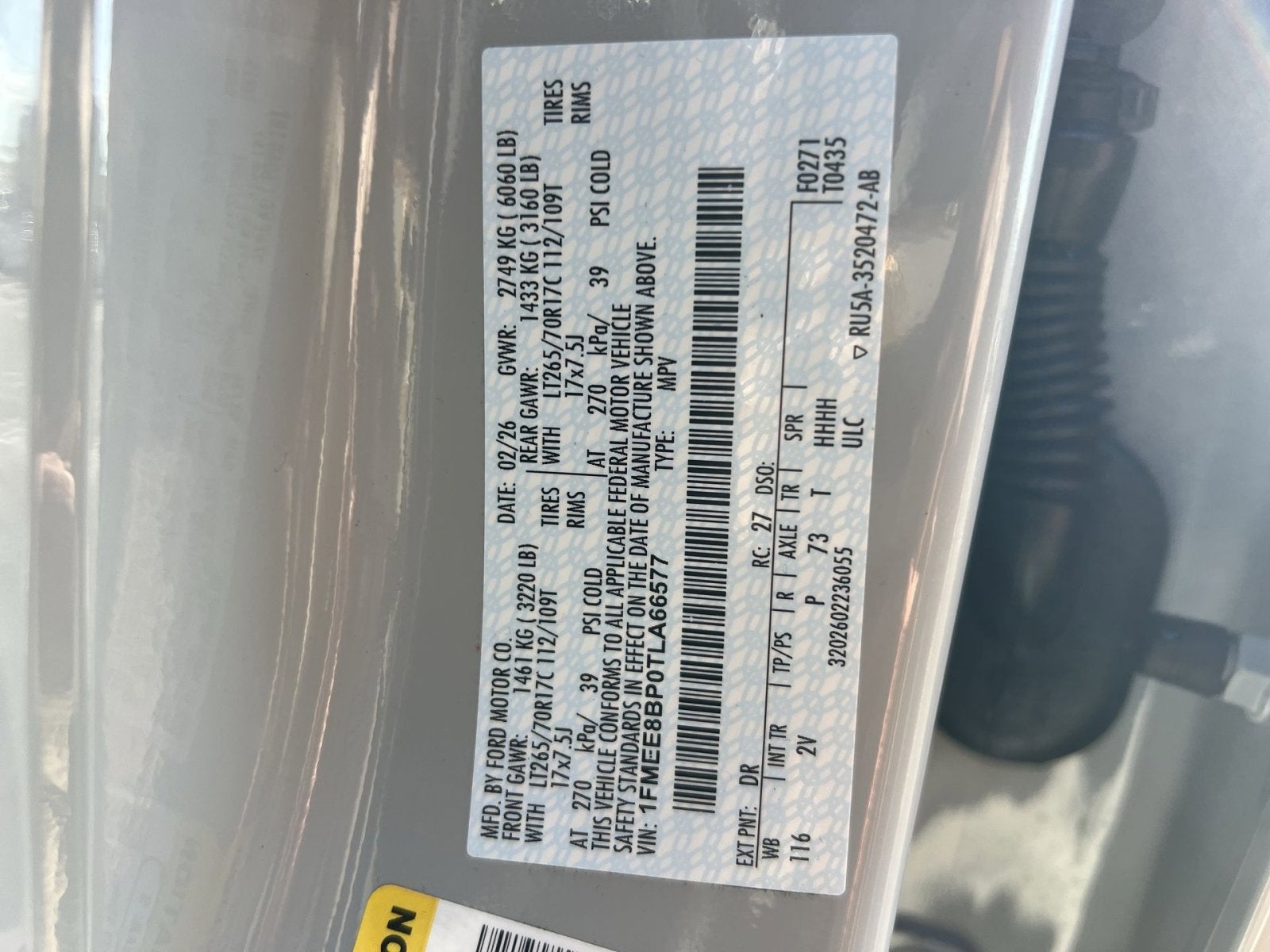 VIN: 1FMEE8BP0TLA66577