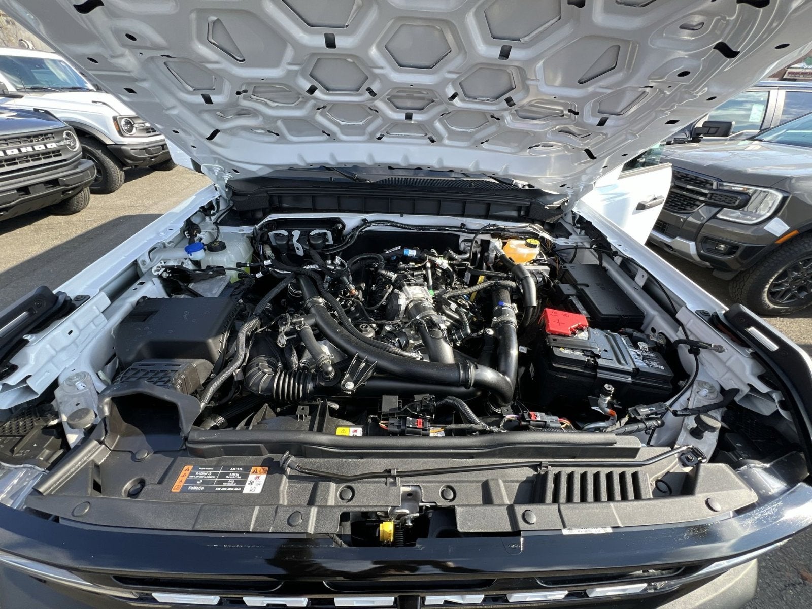 18 Bright Machined Aluminum Wheels, 3.73 Axle Ratio, 360-Degree Camera, 4-Wheel Disc Brakes, 7 Speakers, ABS brakes, Adaptive Cruise Control, Air Conditioning, Alloy wheels, AM/FM radio: SiriusXM with 360L, AM/FM Stereo, Auto High-beam Headlights, Auto-dimming Rear-View mirror, Automatic temperature control, Body Color Painted Hard Top, Brake assist, Compass, Connected Navigation, Delay-off headlights, Driver door bin, Driver vanity mirror, Dual front impact airbags, Dual front side impact airbags, Electronic Stability Control, Emergency communication system: 911 Assist, Equipment Group 314A Lux Package, Evasive Steering Assist, Exterior Parking Camera Rear, Ford Connectivity Package (1-Year Included), Front anti-roll bar, Front Bucket Seats, Front Center Armrest, Front dual zone A/C, Front fog lights, Front License Plate Bracket, Front Parking Sensors, Front reading lights, Front wheel independent suspension, Fully automatic headlights, Hard Top Sound Deadening Headliner, Heated door mirrors, Heated front seats, Heated Leather-Trimmed/Vinyl Bucket Seats, Heated steering wheel, Illuminated entry, Information on Demand Panel, Integrated roll-over protection, Leather Shift Knob, Low tire pressure warning, Navigation system: Connected Navigation, Occupant sensing airbag, Outside temperature display, Overhead airbag, Overhead console, Panic alarm, Passenger door bin, Passenger vanity mirror, Power door mirrors, Power driver seat, Power passenger seat, Power steering, Power windows, Radio data system, Rear seat center armrest, Rear-Window Defroster and Washer, Remote keyless entry, Security system, Sideview Mirrors, SiriusXM with 360L, Speed control, Split folding rear seat, Steering wheel mounted audio controls, SYNC 4, Tachometer, Telescoping steering wheel, Tilt steering wheel, Traction control, Trip computer, Variably intermittent wipers, Voltmeter.