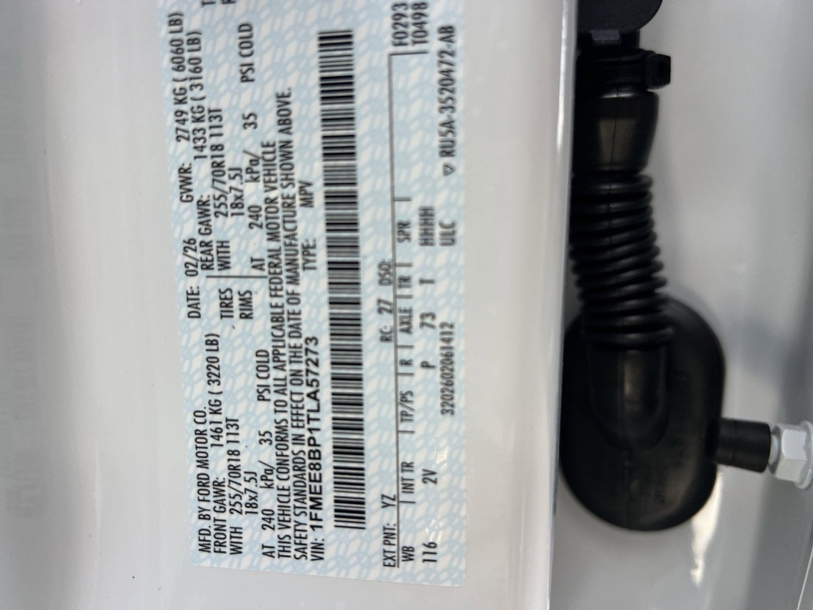 VIN: 1FMEE8BP1TLA57273