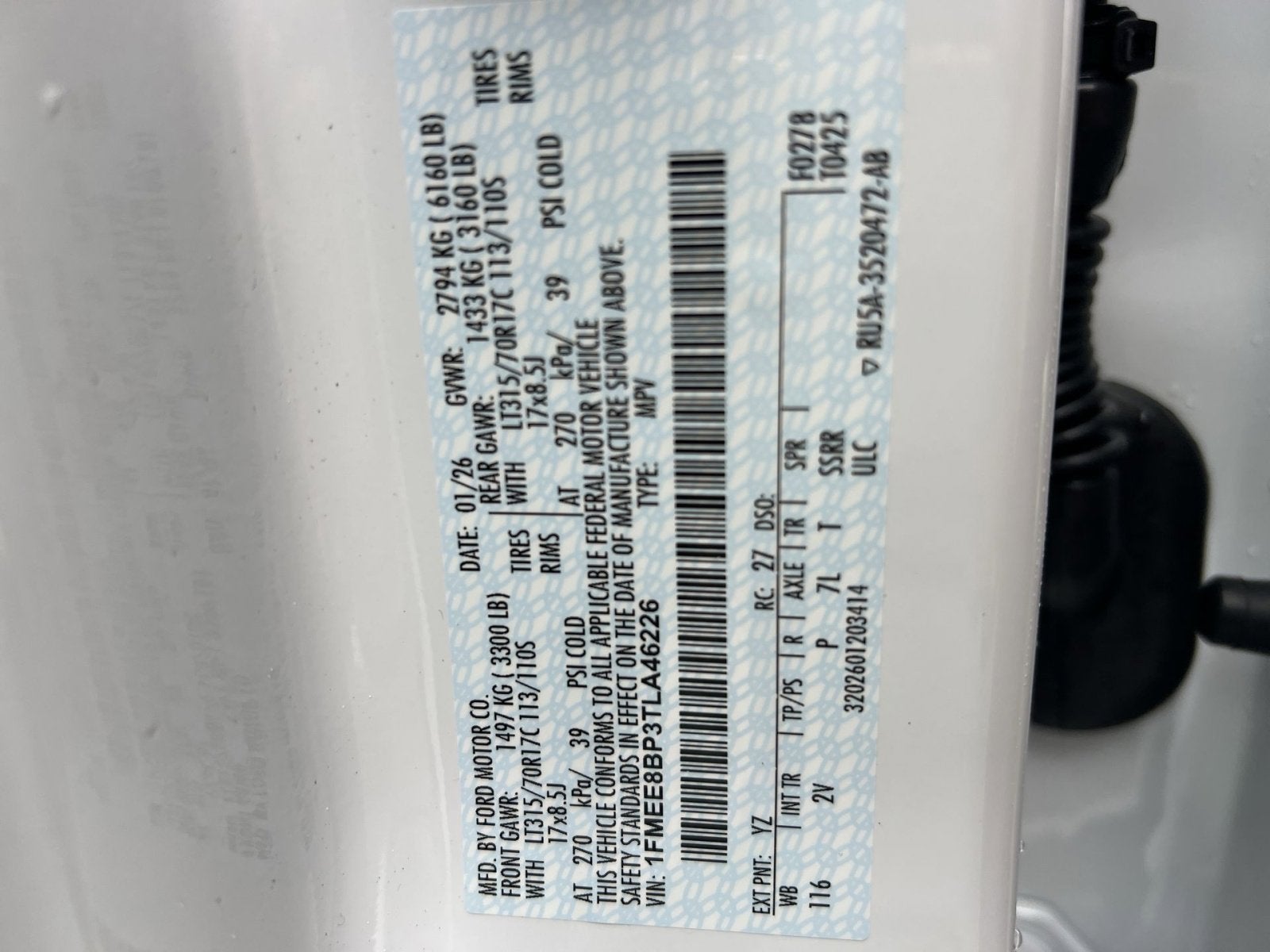 VIN: 1FMEE8BP3TLA46226