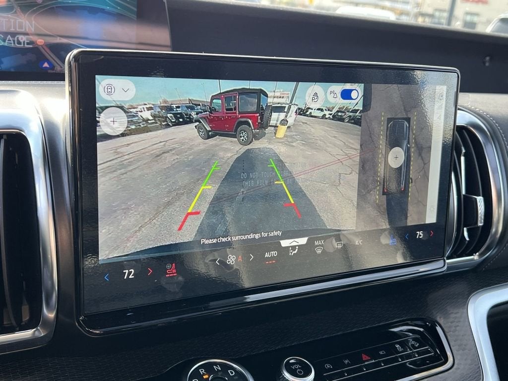 10 Speakers, 2nd Row Power-Folding Captain's Chairs, 3.73 Axle Ratio, 3rd row seats: split-bench, 4-Wheel Disc Brakes, ABS brakes, Air Conditioning, Alloy wheels, AM/FM radio: SiriusXM with 360L, Apple CarPlay/Android Auto, Auto High-beam Headlights, Auto-dimming door mirrors, Auto-dimming Rear-View mirror, Automatic temperature control, Brake assist, Bumpers: body-color, Compass, Delay-off headlights, Driver door bin, Driver vanity mirror, Dual front impact airbags, Dual front side impact airbags, Electronic Stability Control, Emergency communication system: 911 Assist, Exterior Parking Camera Rear, Ford Connectivity Package (1-Year Included), Ford Digital Experience, Four wheel independent suspension, Front anti-roll bar, Front Bucket Seats, Front Center Armrest, Front dual zone A/C, Front reading lights, Fully automatic headlights, Garage door transmitter, Genuine wood dashboard insert, Genuine wood door panel insert, Heated and Ventilated Leather Front Captain's Chairs, Heated door mirrors, Heated front seats, Heated rear seats, Heated steering wheel, Illuminated entry, Leather steering wheel, Low tire pressure warning, Memory seat, Navigation System, Occupant sensing airbag, Outside temperature display, Overhead airbag, Overhead console, Panic alarm, Passenger door bin, Passenger vanity mirror, Power door mirrors, Power driver seat, Power moonroof: Vista Roof, Power passenger seat, Power steering, Power windows, Radio data system, Radio: B&O Sound System by Bang and Olufsen, Rain sensing wipers, Rear air conditioning, Rear anti-roll bar, Rear reading lights, Rear window defroster, Rear window wiper, Reclining 3rd row seat, Remote keyless entry, Security system, SiriusXM with 360L, Speed control, Speed-sensing steering, Speed-Sensitive Wipers, Split folding rear seat, Spoiler, Steering wheel memory, Steering wheel mounted audio controls, Tachometer, Telescoping steering wheel, Tilt steering wheel, Traction control, Trip computer, Turn signal indicator mirrors, Variably intermittent wipers, Ventilated front seats, Voltmeter, Wheels: 20 x 8.5 Ebony Bright Machined Aluminum.