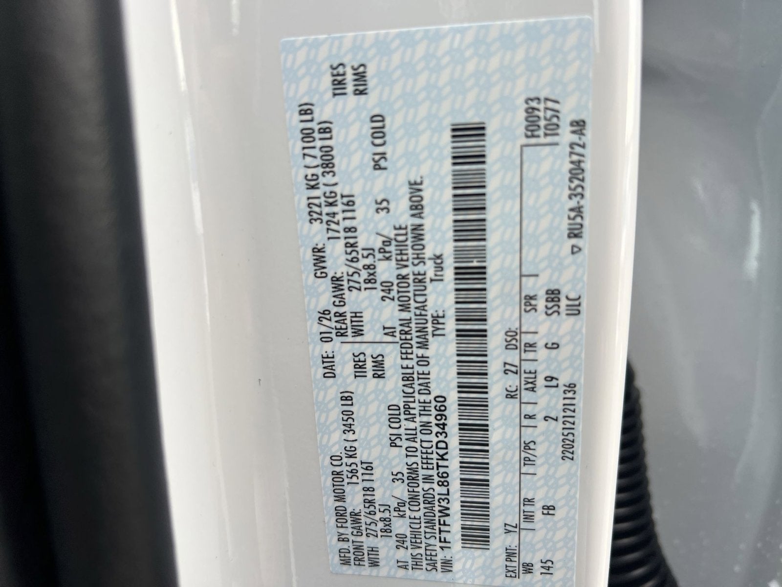 - ENGINE: 3.5L V6 ECOBOOST -inc: auto start-stop technology 3.31 Axle Ratio GVWR: 7 100 lbs Payload Package