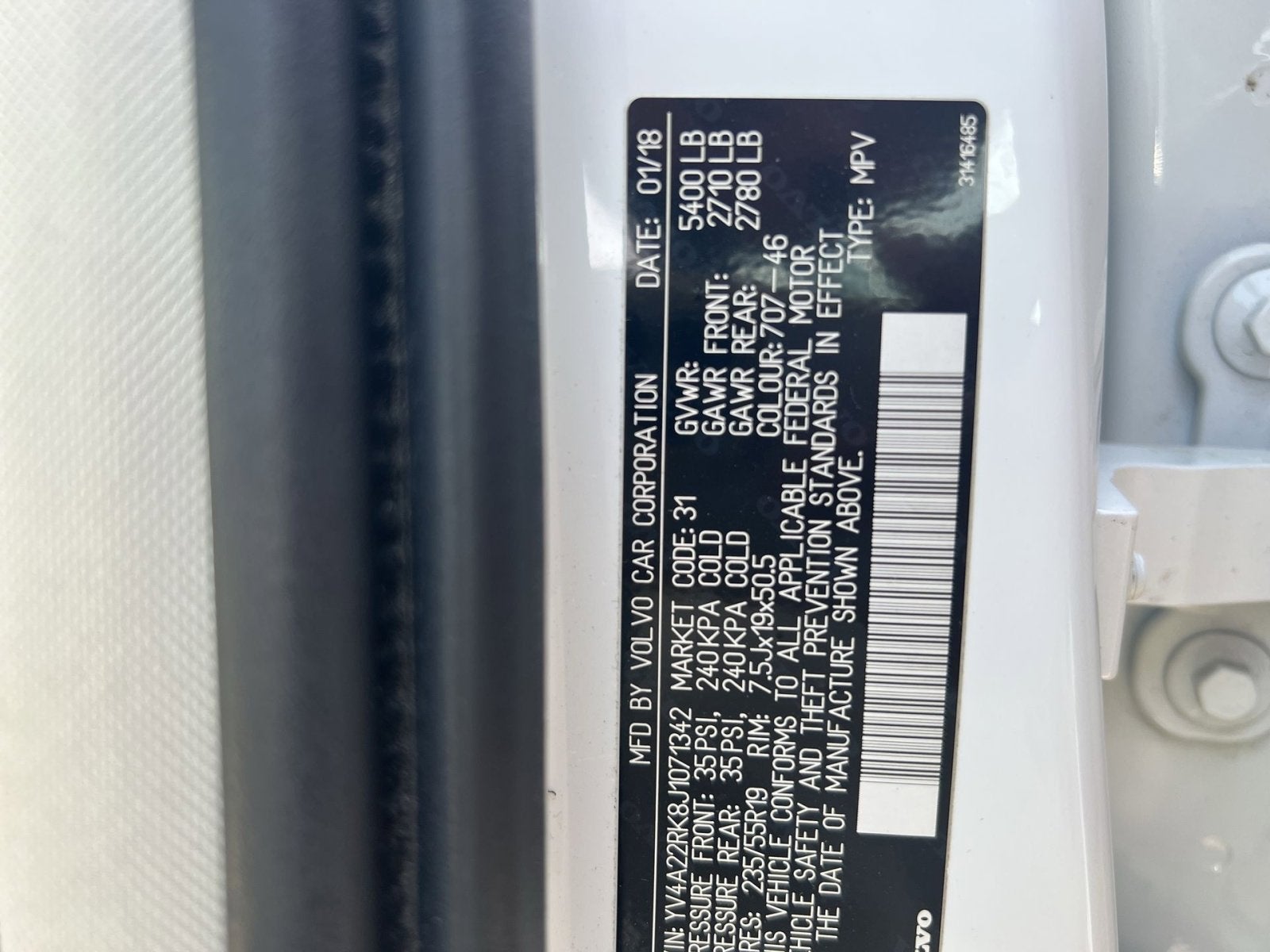VIN: YV4A22RK8J1071342