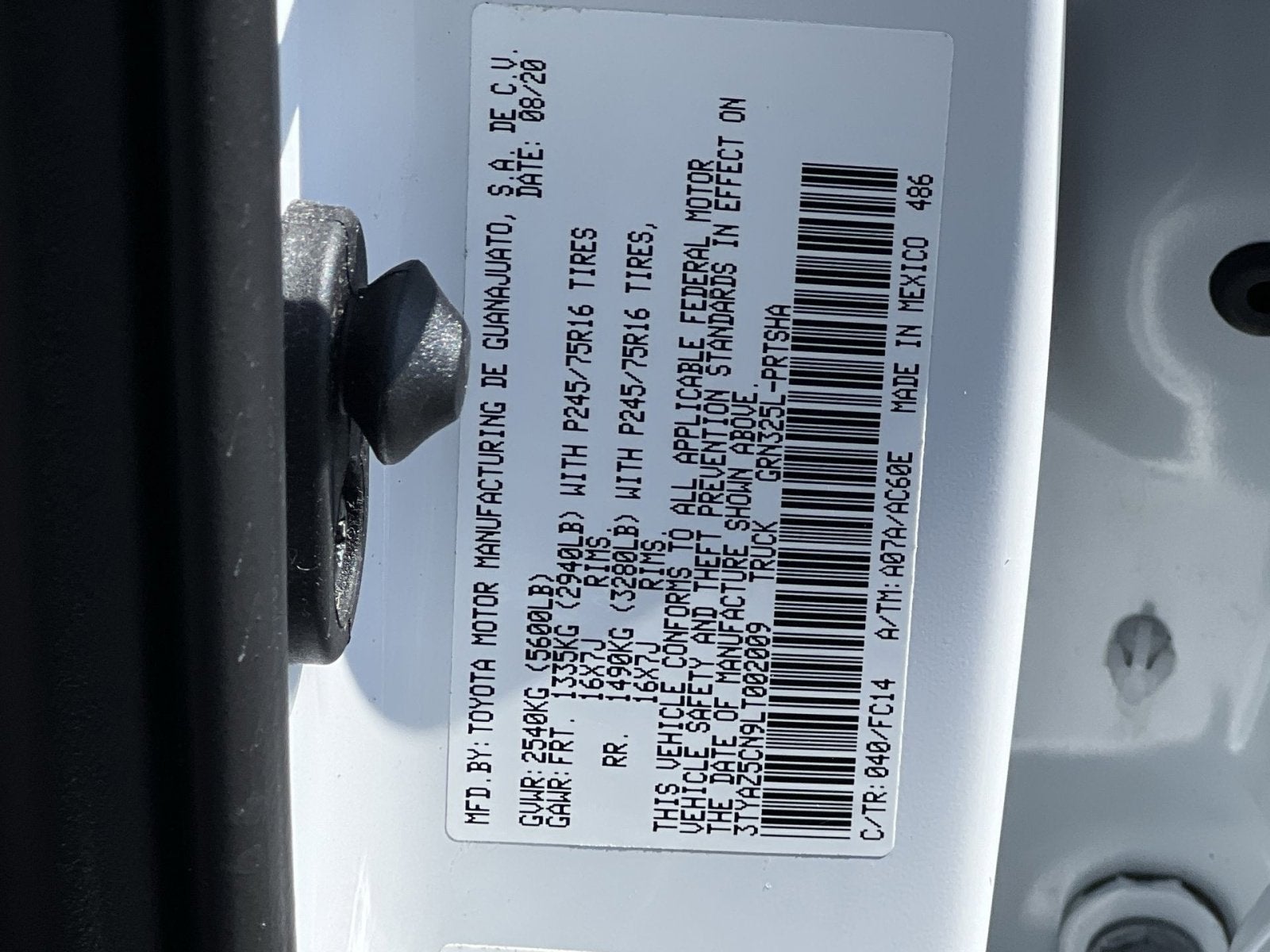 VIN: 3TYAZ5CN9LT002009