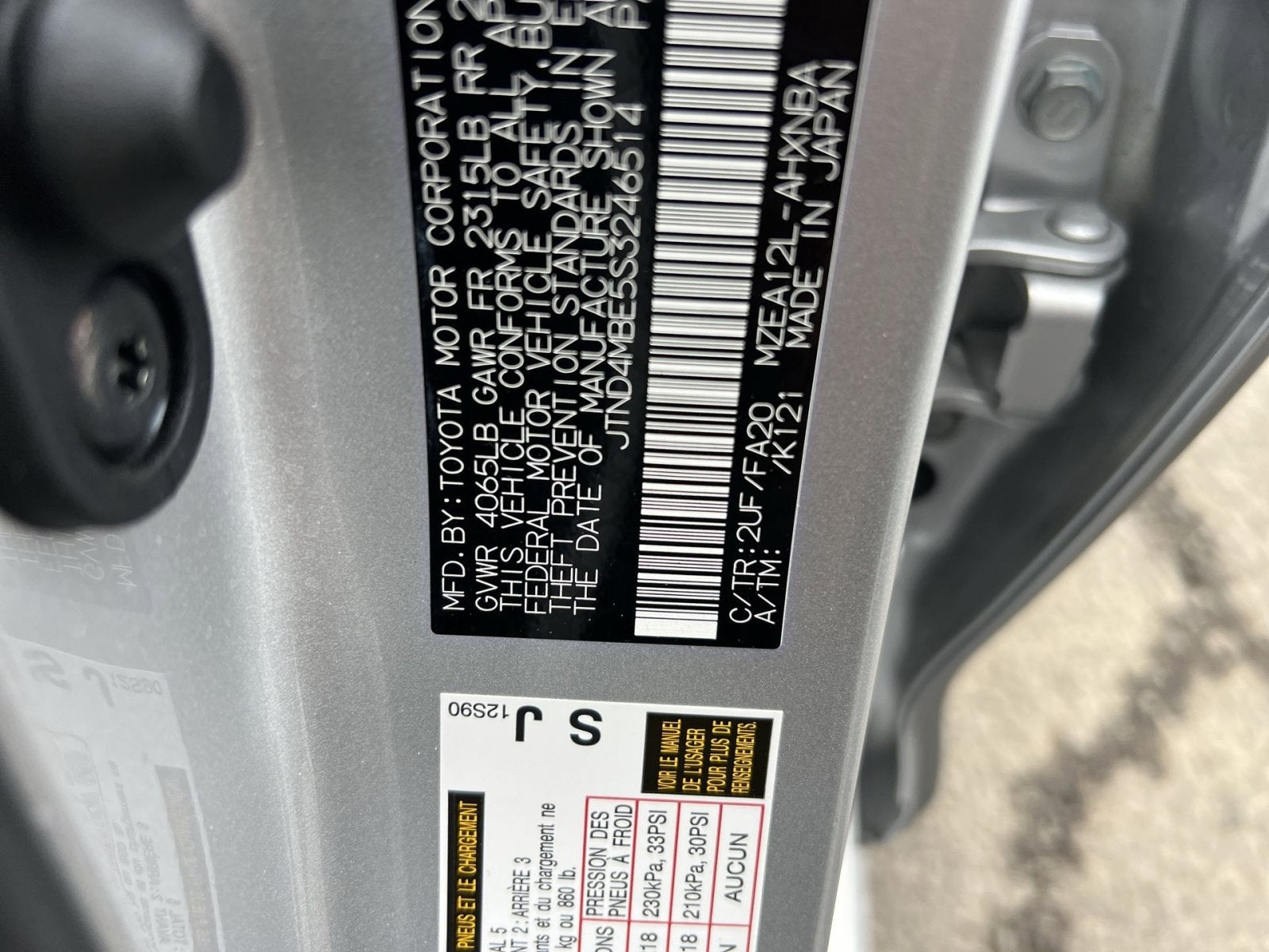 VIN: JTND4MBE5S3246514